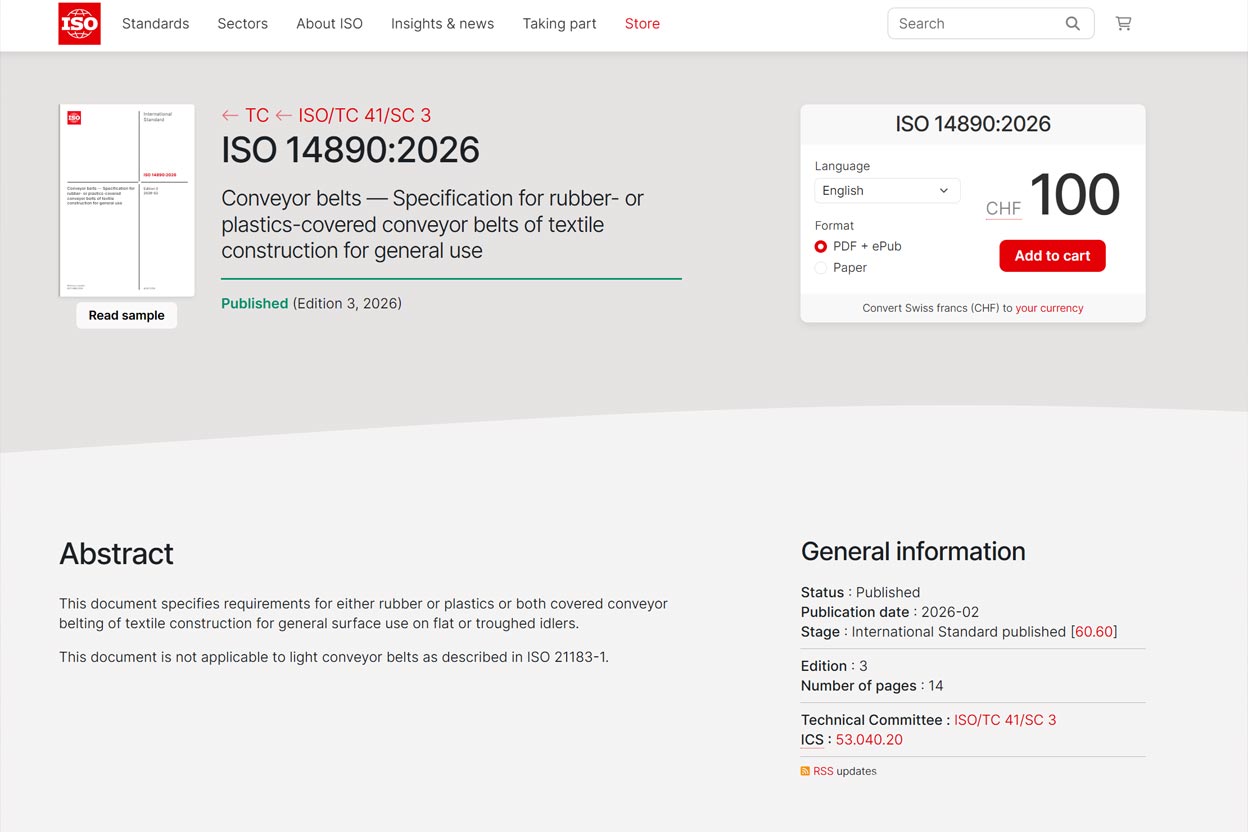 As the echoes of the Chinese New Year bell still linger, Shandong Chenguang Conveyor Belt Co., Ltd. is greeted with exciting news – the international standard ISO 14890:2026 Conveyor belts — Specification for rubber- or plastics-covered conveyor belts of textile construction for general use, co-drafted by the company, has been officially released and implemented! This marks another major breakthrough for Chinese conveyor belt enterprises on the international standard stage.